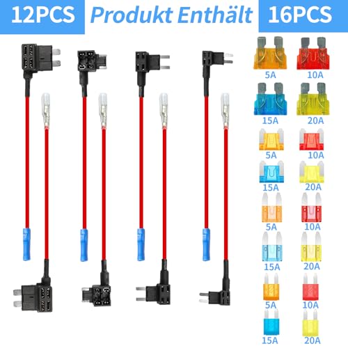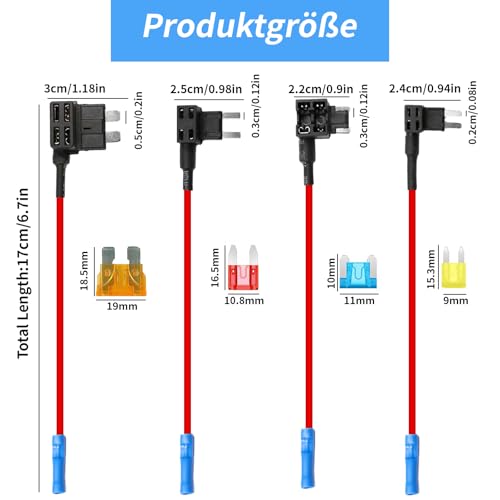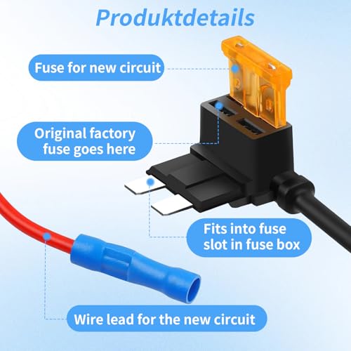 【Hochwertiges Material】: Der Kfz Steckdosen Flachsicherungsadapter besteht aus hochwertigem verzinntem Kupferdraht mit guten Biegeeigenschaften. Die stromdieb kfz-sicherung besteht aus einer hochwertigen Zinklegierung und isolierendem Kunststoff, der korrosionsbeständig ist, eine gute Leitfähigkeit und eine ausgezeichnete Schmelzbeständigkeit aufweist, langlebig ist und Fahrzeugleitungen und elektrische Geräte sicher und effektiv schützen kann.