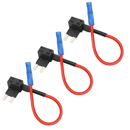 Aiqeer 3 Stück 12V / 24V Klein Piggyback Sicherungshalter, Auto Add-a-Circuit Sicherung Tap mit Kabelbaum, Gratis 15 Stück Mini Flachsicherungen und Sicherungszieher (Crimp Terminal)
