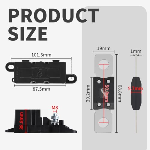 EFUTURETIME 2 Stk. Mega Sicherungshalter mit 2 Mega Sicherungen 100A KFZ Sicherungshalter ANM Bolt-on Hochstromsicherung M8 für PKW Motorrad LKW Wohnwagen Schiff