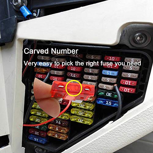 〓 Einfach zu verwenden, einfache identifizierung. Verschiedene aktuelle Sicherungen können leicht anhand der Nummern und der Farbkennzeichnung auf der Fahrzeugsicherung identifiziert werden. Durchsichtig, um durchgebrannte Sicherungen schnell zu erkennen.
