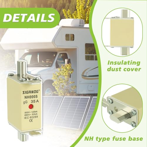 SIGANDG NH Sicherungseinsatz NH000 35A gG Frontanzeige Kombimelder, 3 Stück
