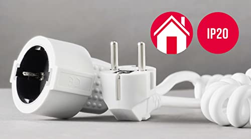 as – Schwabe Spiralleitung, 1m auf 2,5m dehnbares Spiral-Kabel mit Schutzkontaktwickelstecker & Schutzkontaktkupplung, 230 V, 16 A Verlängerungskabel, IP20, weiß, 70412