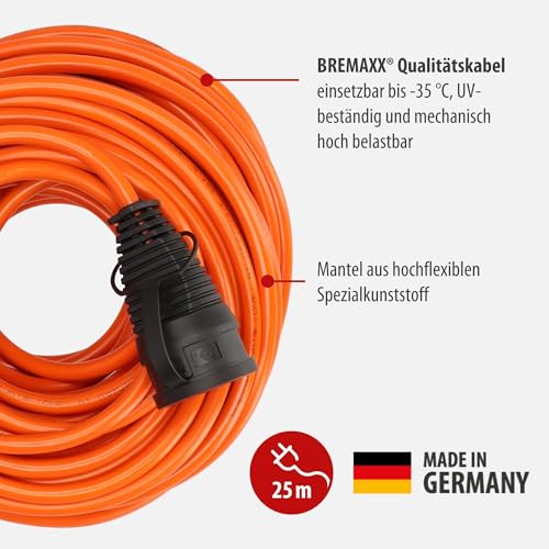 Brennenstuhl BREMAXX Verlängerungskabel V2 außen 25m (Kabel in Signalfarbe orange, kurzfristiger Einsatz im Außenbereich IP44, einsetzbar bis -35 °C und UV-beständig, Made in Germany)