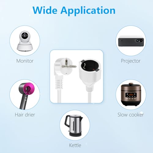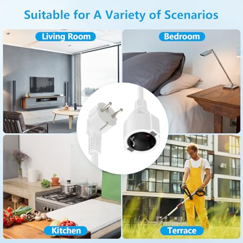 Vielseitige Kabelverlängerungen: Die 1,1 Meter lange Steckdosenverlängerung ist vielseitig einsetzbar und eignet sich ideal für die Verlängerung der Stromversorgung in Wohnräumen, Büros und anderen Innenräumen.