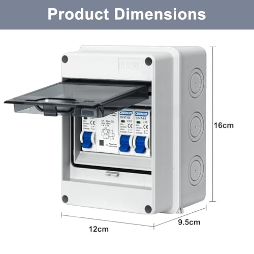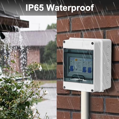 【Hochwertiger Kunststoff】- Schutzschalter für Leckageschaltungen besteht hauptsächlich aus hochwertigem dickem Kunststoffmaterial, das hochflammhemmend und schlagfest, hochhart, schwer zu brechen oder zu beschädigen und wasserdicht nach IP65 für eine lange Lebensdauer ist.
