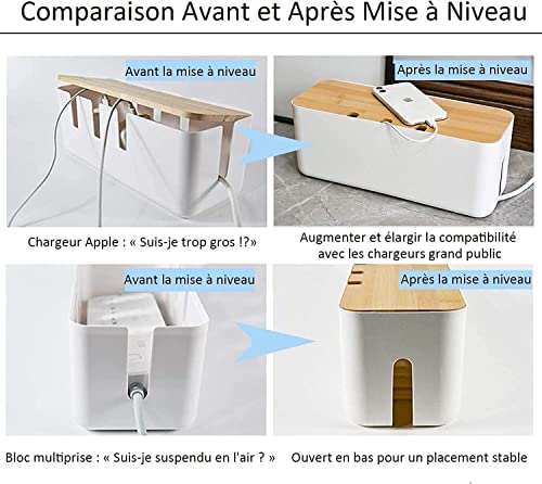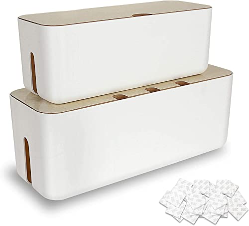 SENENQU 2er-Set Kabelbox Weiß, Große Kabel Organizer Box mit Holzdeckel für Kabel, Große und Kleine Kabelmanagement Box Adapter, Steckerleisten, Kabel Verstecken Box mit 20 Doppelseitige Aufkleber