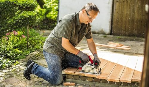 Die Einhell Akku-Handkreissäge TE-CS 18/150 Li – Solo ist klein, leicht und handlich zu bedienen und damit ideal für alle Arbeiten rund um Haus, Garten und Hobby. Mit bis zu 4.200 Umdrehungen pro Minute beträgt die Schnitttiefe bei 90° bis zu 48 mm