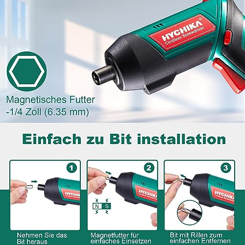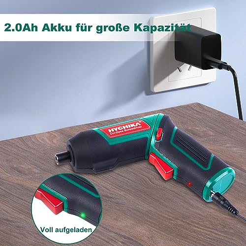 HYCHIKA Akkuschrauber, Cordless Screwdriver 6N·m Drehmoment und 2000mAh Akku 3,6V mit 20 Zubehörteilen, LED Licht, Magnetfutter für Schrauben