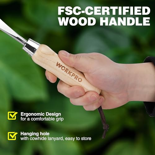WORKPRO Fugenkratzer 31,5cm mit Holzgriff, Unkrautstecher mit gezackter Kante, Unkrautjäter zum Entfernen von Moos & Unkraut, Unkraut Entferner Gerät für Gartenarbeit