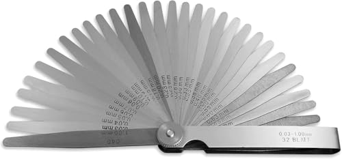Das doppelt markierte Fühlerlehren-Set mit 32 Klingen ist geeignet für Designer, Ingenieure und Mechaniker, um die Dicke von Stößelabständen, Zündkerzenlücken, Lagerabständen und anderen schwer zugänglichen Stellen zu messen.