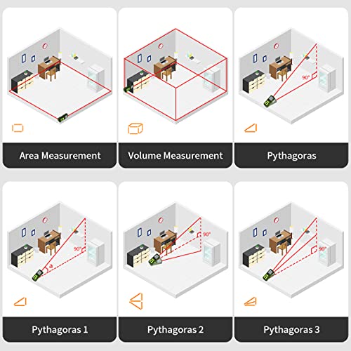 HOCHPRÄZISE UND UMSCHALTBARE EINHEITt: Dank fortschrittlicher Lasertechnologie kann die Messgenauigkeit +/-2 mm erreichen. Das Werkzeug kann von vorderen/mittleren/hinteren Referenzpunkten aus messen, was das Messen in verschiedenen Situationen erleichtert. Alle Messungen werden in Echtzeit angezeigt und können frei zwischen M/In/Ft umgeschaltet werden.
