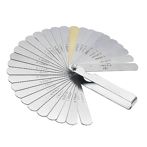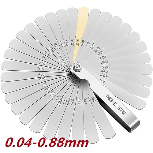 JDXun 32 Klingen Fühlerlehre Edelstahl, Dual Marked Metrisch/Imperial Gap Messwerkzeug für Messung Gap Breite/Dicke Größen, 0,04-0,88 mm