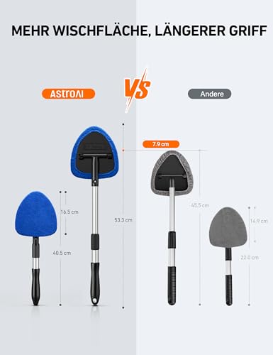 AstroAI Auto Scheibenreiniger mit 4 Mikrofaserpad, Reinigungswerkzeug für die Windschutzscheibe mit ausziehbarem Griff, Auto Fensterwischer Kit, Blau