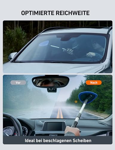Schnelle und einfach die Auto Windschutzscheibe zu reinigen: Reinigen Sie die Innen- und Außenbereiche der Autofenster ohne Anstrengung. Nie mehr den Rücken verletzen. Mit dem extra langen Verlängerungsgriff und dem schwenkbaren Kopf ist es einfach, zu diesen schwer zugänglichen Autofensterböden zu gelangen