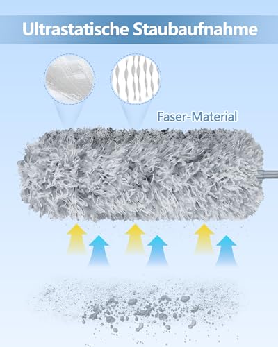 Fogray Staubwedel Teleskop Waschbar Duster Lang Ausziehbar mit Weichem Silikon Cap, Spinnenwebenentferner Staubwischer mit Teleskopstange, Staubmagnet Staubfänger für hohe Decken Deckenventilator