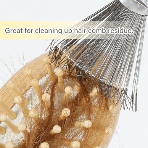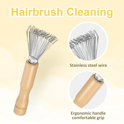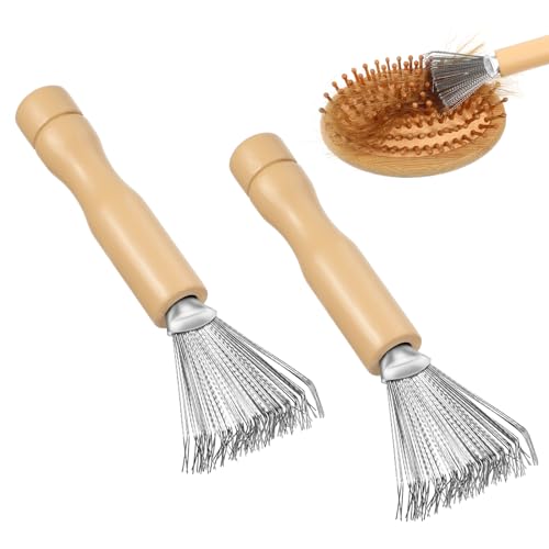 JIEYAO 2 Pcs Hair Brush Cleaner Tool, Hairbrush Cleaner Comb, Comb Cleaning Brush Hairbrush Cleaning Rake Wooden Handle Hair Remover Brush for Removing Hairs Dust Dirt Lint Home Salon