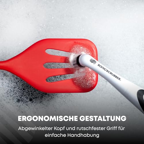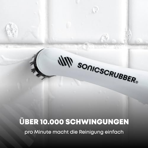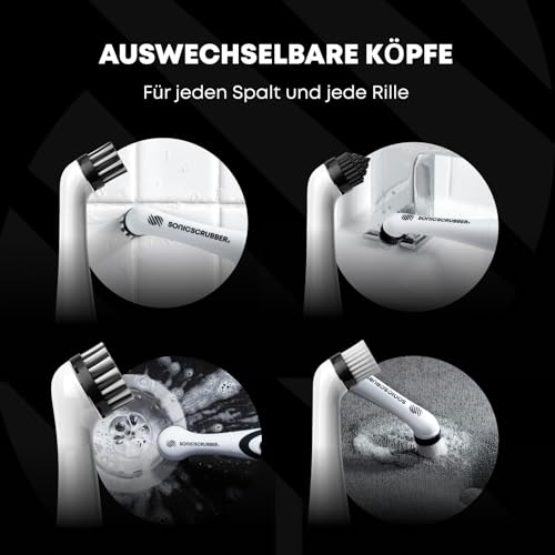 SonicScrubber – Elektrische Reinigungsbürste – Inklusive 4 Bürstenköpfe – Ideal für alle Räume und Oberflächen – AA-Batterien im Lieferumfang enthalten (Haushalt für Küche und Bad)