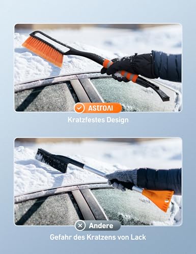 AstroAI Eiskratzer Auto mit Besen Schneebesen Abnehmbarer 68CM Lang mit große Kante Borsten & Ergonomischem Schaumstoffgriff & Langlebiger Scheibenkratzer lackschonend für Auto Orange