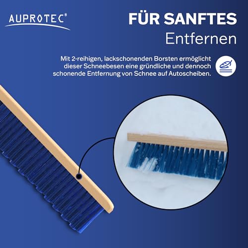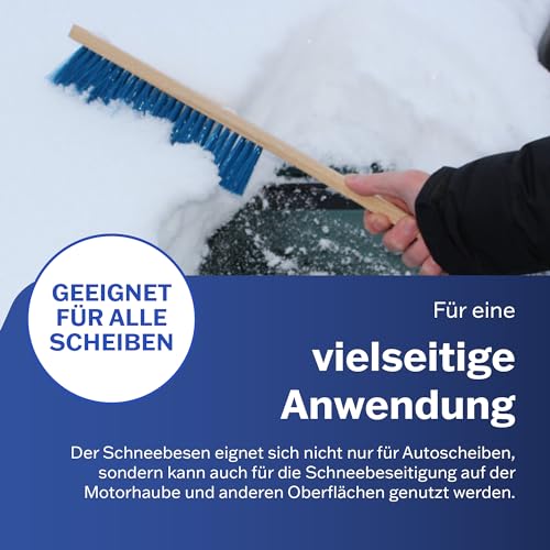 AUPROTEC Schneebesen Auto Holz/Handfeger Auto Schnee/Schneebesen Auto lackschonend/Besen Auto Schnee/Auto Besen Winter/Schneebürste Auto Weich/Schneefeger Auto mit Holzgriff