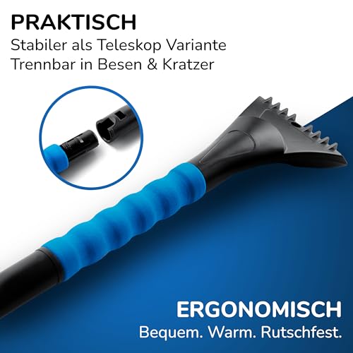 ✅ 𝗞𝗢𝗠𝗣𝗟𝗘𝗧𝗧 𝗣𝗔𝗞𝗘𝗧 – Gepolsterter, bequemer, warmer und rutschfester Griff, stabiler als jede Teleskop Variante, lang genug für jedes Fahrzeug und trennbar in Besen und Kratzer Auto. Dieser Schneekratzer Auto mit Besen vereint einfach alles!
