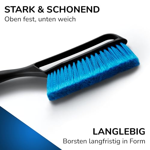 ✅ 𝗟𝗔𝗡𝗚𝗟𝗘𝗕𝗜𝗚 & 𝗦𝗖𝗛𝗢𝗡𝗘𝗡𝗗 – Bei jeder Borste achten wir auf hohe Standfestigkeit und gleichmäßig aufgeweichte Enden. Dadurch entfernt der Besen über Jahre spielerisch auch schwersten Schnee und schont gleichzeitig Lack und Scheibe!