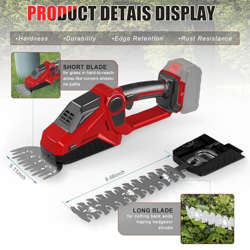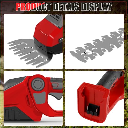 2-in-1 Akku Heckenschere & Grasschere kompatibel mit Milwaukee M18 18V Akku, 150W 90° Verstellbare Elektrische Strauchschere mit 2 Aufsatzklingen zum Schneiden von Strauch und Gras (ohne Akku)