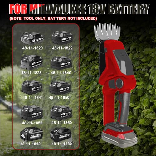 [Kabelloser Betrieb] Verabschieden Sie sich von verhedderten Kabeln und eingeschränktem Bewegungsspielraum. Mit dieser handgeführten elektrischen Heckenschere können Sie sich ohne Einschränkungen in Ihrem Hof oder Garten bewegen. Sie ist kompatibel mit Milwaukee M18 18V Akkus (nicht im Lieferumfang enthalten) wie 48-59-1812 48-11-2420 48-11-2402 48-11-2440 48-11-1850 48-11-2401 48-11-1890.