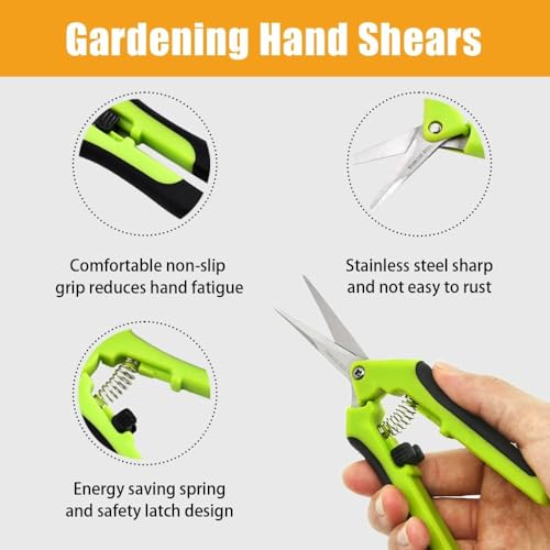 Allround-Gartenschere für Ihre Gartenarbeit-Unsere Gartenschere ist das perfekte Werkzeug für Ihre Gartenarbeit. Sie eignet sich hervorragend für Obstgärten, Gärten und Gemüsebeete und kann problemlos Zweige, Weinreben, Blumen (einschließlich Rosen) und frisches Holz schneiden. Titan-Antihaftbeschichtung verhindert Oxidation, verhindert Oxidation, sodass die Schere auch bei regelmäßiger Nutzung ihre Schärfe und Leistung behält. Ergonomisches Design für maximalen Komfort-Gartenschere ist mit einem Daumen-Verriegelungs- und Öffnungssystem ausgestattet, das eine sichere und einfache Handhabung gewährleistet. Die integrierte Feder sorgt für eine lange Nutzungsdauer ohne Ermüdung der Hände, was sie ideal für Menschen mit Arthritis oder Handgelenksproblemen macht. Der ergonomische Griff aus rutschfestem schwarzem Gummi bietet zusätzlichen Komfort und Kontrolle, sodass Sie präzise Schnitte mühelos durchführen können. Das leichte Gehäuse und die ergonomisch geformten Griffe reduzieren die Handermüdung und ermöglichen längeres Arbeiten ohne Beschwerden.