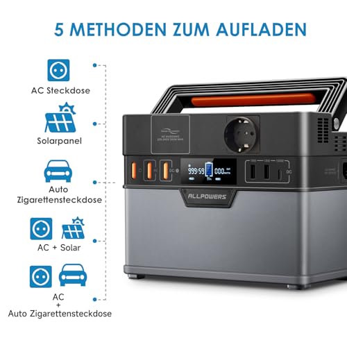 ALLPOWERS S300 PLUS Tragbarer Powerstation 288Wh Mobile Stromversorgung Generatoren 300W Batterie Mobiler Stromspeicher für Garten Party Reise Camping Wohnmobil Notfall
