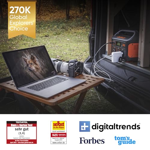 Jackery Explorer 500, 518Wh Tragbare Powerstation Mobiler Stromspeicher mit 230V/500W (Spitze 1000W) Steckdose, Mobile Stromversorgung mit LCD-Anzeige für Party, Camping, Wohnmobil, Heimwerken