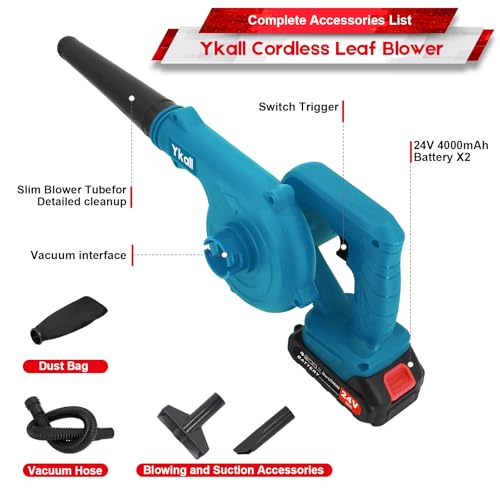 Akku-Laubbläser 24V – Kabelloser Leistungsstarker Elektrischer Laubbläser mit 2 Akkus & Ladegerät, Ideal für Gartenarbeit, Terrasse, Hof, Garage, Laub, Staub, Schnee & Tierhaare (Blau)