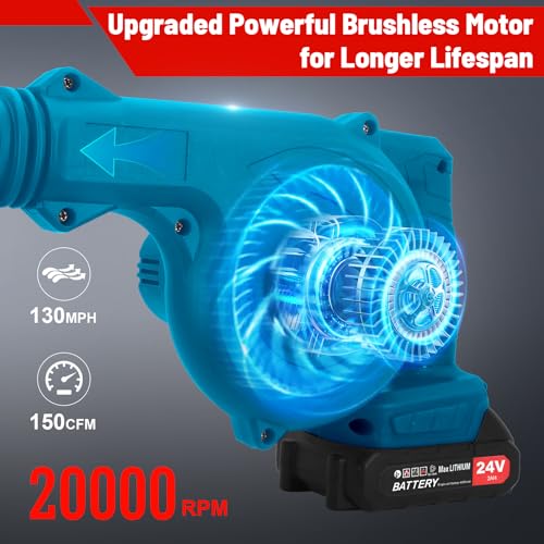 🍂【Leistungsstarker Bürstenloser Motor】- Unser kabelloser Laubbläser ist mit einem effizienten bürstenlosen Motor und moderner Turbotechnologie ausgestattet. Er erreicht Luftgeschwindigkeiten von bis zu 20.000 U/min und 150 cfm – für eine schnelle und gründliche Reinigung von Garten, Haus und Tierhaaren.