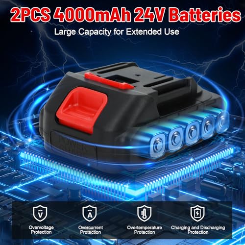 🔋【2 x 4000 mAh Akkus für Lange Laufzeit】- Ausgestattet mit zwei 24V-4000 mAh Lithium-Ionen-Akkus und Schnellladegerät ermöglicht der Laubbläser bis zu 40 Minuten Betrieb im Hochgeschwindigkeitsmodus. Die Akkus schützen vor Unterspannung und Überstrom, schalten sich automatisch ab und sorgen für sichere Nutzung.