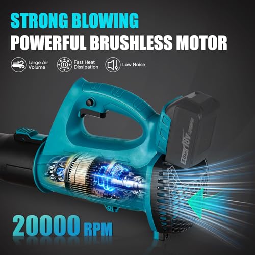 ✅【Leistungsstarker bürstenloser Motor】Der wartungsarme und kraftvolle Brushless-Motor sorgt für maximale Leistung bei längerer Laufzeit im Vergleich zu herkömmlichen Kohlebürstenmotoren. 6 Geschwindigkeiten einstellbar. Luftgeschwindigkeit 67m/s, maximale luftvolumenstrom: 5.8-10.0 m³/min -348-732 m³/h.