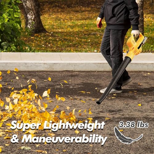 【ERWEITERTE TURBO-TECHNOLOGIE】Entfesseln Sie mit dem elektrischen Laubbläser die Kraft der erweiterten TURBO-TECHNOLOGIE, die die maximale Windgeschwindigkeit auf beeindruckende 150 MPH erhöht. Obwohl der Turbomodus viel Strom verbraucht (was die Batterien schneller entleert), geht er effizient mit hartnäckigem Schmutz um und macht die Reinigung zu einem Kinderspiel. Genießen Sie ein leichtes, kabelloses Design, das im Vergleich zu herkömmlichen Laubbläsern ein besseres Benutzererlebnis bietet.