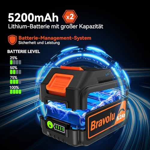 【Langlebige Batterielebensdauer】: Ausgestattet mit der neuesten 5,2Ah Batterie bietet dieser kabellose Laubbläser bis zu 20 Minuten Laufzeit bei hoher Geschwindigkeit und bis zu 60 Minuten bei niedriger Geschwindigkeit. Die intuitive Batterieanzeige informiert Sie über den Ladezustand (25%-50%-75%-100%) und erinnert Sie daran, wann es Zeit zum Aufladen ist. Das eingebaute Schutzsystem optimiert zudem die Lebensdauer von Motor und Batterie.