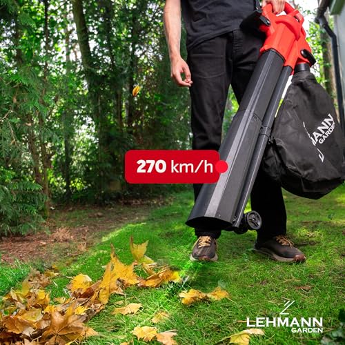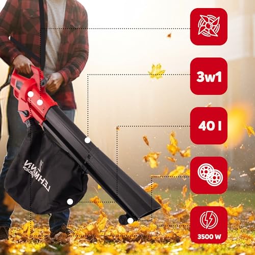 LEHMANN Elektro Laubbläser 3-in-1, Laubsauger mit Häcksler, 3500W, Häcksel-, Saug- und Blasfunktion in einem, 270 km/h Blasgeschwindigkeit, 15.000 U/min, Fangsack 40L, Tragegurt & Räder