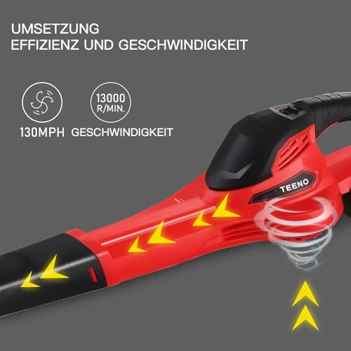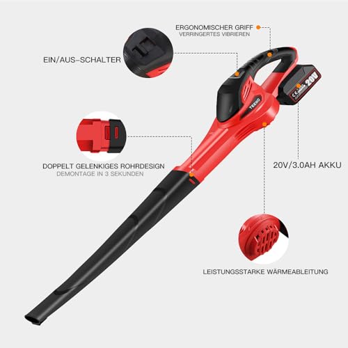 TEENO 20V Akku-Laubbläser mit 3Ah Akku und Ladegerät, 288 km/h Luftgeschwindigkeit, Leicht und Ergonomisch, Ideal für Haus, Garten, Gewerbe