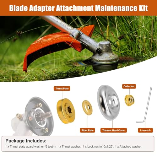 Umfassender Ersatzteilesatz: Enthält 1 Schutzabdeckung, 1 Druckplattenschutzscheibe, 1 Druckscheibe, 1 M10 LH-Gewindemutter und 1 L-Schlüssel. Kompatibel mit den meisten Mähwerksköpfen für einen stabilen Anbau
