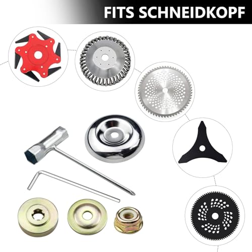 Lieferinhalt – Der ersatzteile für freischneider für gartenmaschinen enthält eine vielzahl von teilen. sie erhalten 5 stk rasenmäher ersatzteile: 1 x schutzabdeckung, 1 x obere platte, 1 x untere platte, 1 x T-Schlüssel, 1 x m10 gewindemutter, 1 x L-förmiger schraubenschlüssel.