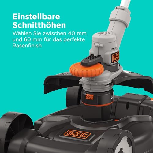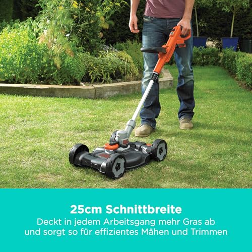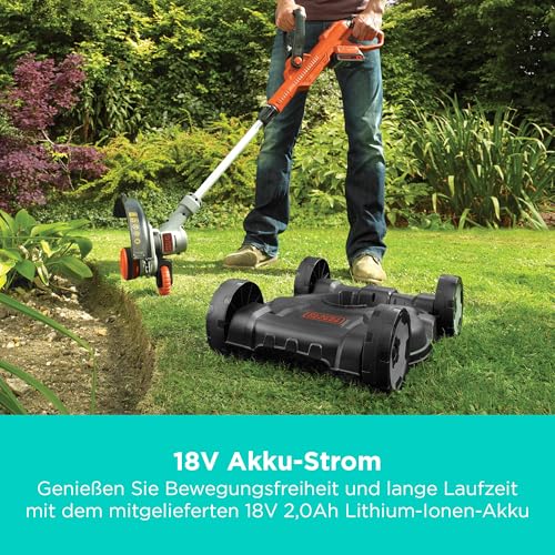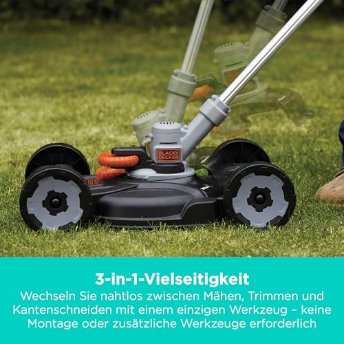 BLACK+DECKER 18V 3-in-1 Akku-Kantenschneider, Mäher und Trimmer, STC1820CM-QW