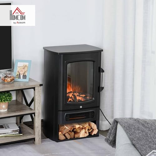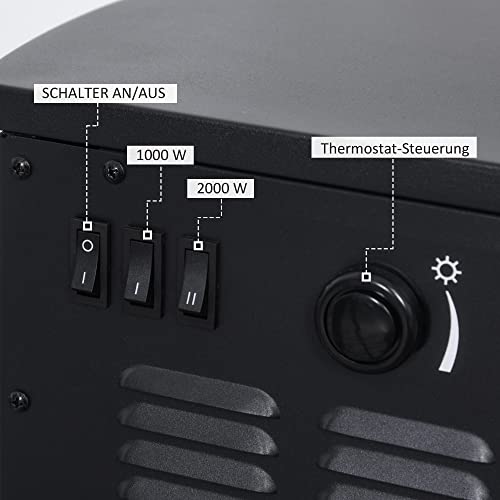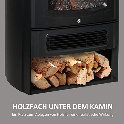 HOMCOM Elektrokamin E-Kamin mit Flammeneffekt Thermostat Kaminofen 1000 W/2000 W, 20–25 qm, Schwarz 44,5×32,1×74 cm