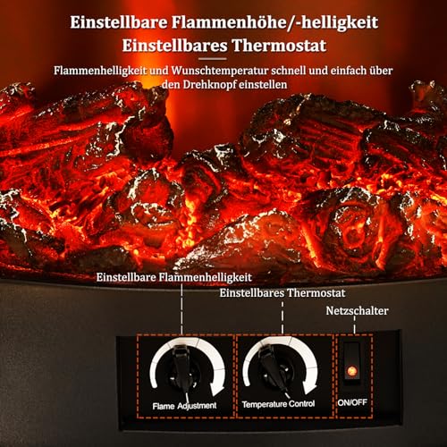 【Elektrischer Kamin mit Flammeneffekt】: 100% energiesparende LED-Lichter und Holz Brennstoffbetten erzeugen lebensechte, helle Holz-Flammeneffekt mit einstellbarem Flammendimmer. Der Flammeneffekt unabhängig von der Heizfunktion nutzbar. Sie können Flammeneffekt mit oder ohne Heizungsfunktion genießen, deshalb kann dieser elektro kaminen Ihr Zimmer das ganze Jahr über dekorieren und Ambiente in Ihrem Zimmer schaffen.