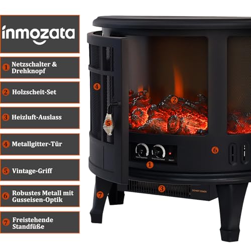INMOZATA Elektrokamin mit Heizung 1800W LED Kaminfeuer mit Flammeneffekt, LED Kamin Elektrisch Kaminofen mit Einstellbarer Thermostat Panorama-Sichtfenster Heizfunktion