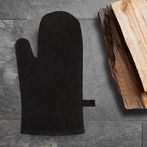 achilles Kaminhandschuh, Entspricht Norm EN407, Mit Thermoisolierung, Ofenhandschuh aus Leder, Schutzhandschuh feuerfest, Grillhandschuh, hitzebeständiger Leder Handschuh, schwarz