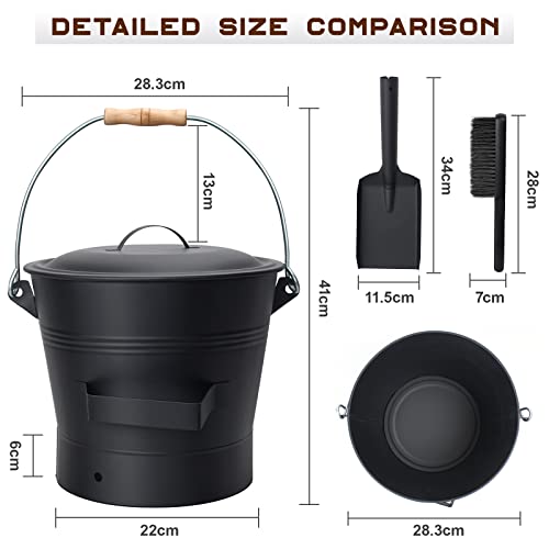 【Langlebig und Robust】Der Eimer und die Schaufel aus gehobener Asche bestehen aus stark verzinktem Eisen mit schwarzer Pulverbeschichtung, die einen guten Schutz vor hohen Temperaturen bietet und die Lebensdauer verlängert.