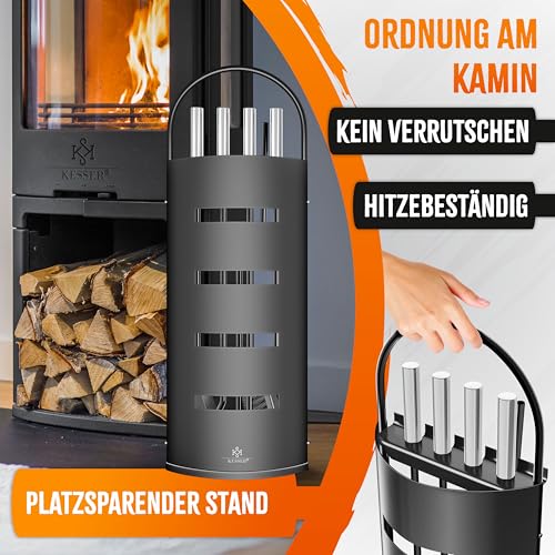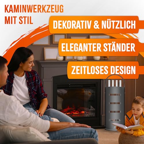 𝐏𝐋𝐀𝐓𝐙𝐒𝐏𝐀𝐑𝐄𝐍𝐃𝐄 𝐄𝐋𝐄𝐆𝐀𝐍𝐓𝐄 𝐋Ö𝐒𝐔𝐍𝐆: Kamin / Ofenbesteck Set zum Hinstellen. Es braucht nicht viel Platz, lässt sich leicht und beliebig oft im Raum verstellen. Kaminwerkzeuge werden kippsicher im rutschfesten Ständer aufbewahrt.