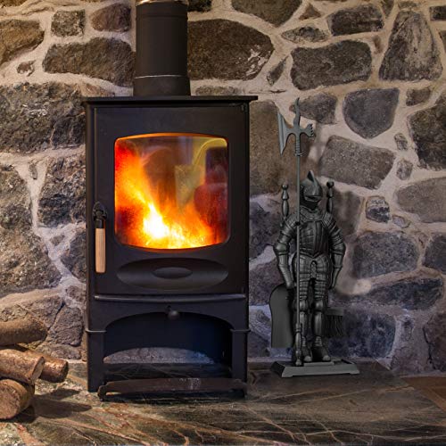Ausgefallenes Design: Ein schwarzer Ritter hält das Kaminzubehör – Mit liebevollen Details gestaltet