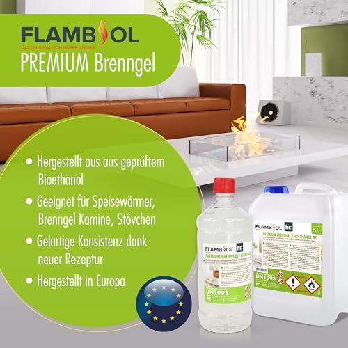 15 x 1 L FLAMBIOL® Premium Brenngel für Brenngel Dekofeuer, Lampe und Kamin – Neue REZEPTUR DICKFLÜSSIGES Gel (15 x 1 L)