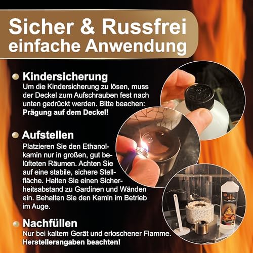 🏡 VIELSEITIG EINSETZBAR Ideal für Ethanol-Kamine, Tischfeuer, Feuerschalen und Deko-Feuerstellen – sowohl drinnen als auch draußen nutzbar.